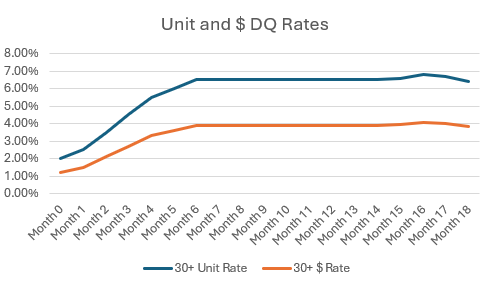 MCA Risk Managers has created a “standard days past due” measure that is based on contract expected performance